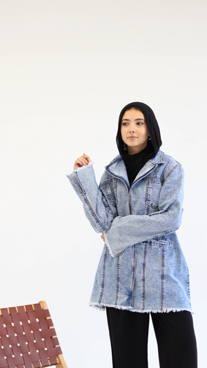 Made from high-quality, breathable denim, this blazer offers a soft touch while ensuring durability for everyday wear. The fabric is lightweight, making it suitable for all seasons.
